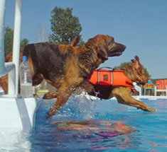 What's good for you is good for your dog: fresh air, exercise, a refreshing dip in the pool, and a trip to the country. This summer, come join us for this unique type of recreation for you and your dog and relax as you enjoy the quiet, scenic countryside. Personal time with your dog is hard to find. Come and enjoy our peaceful setting, and get in shape at the same time! Available by appointment from May through October, you can have private access to one acre of fenced land and our brand new therapeutic pool (20 x 50) with changing area and dog dryer.